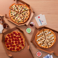 2 بيتزا كبيرة، 10 قطع أجنحة دجاج، 1 تويست السينامون، ومشروب 1.25 لتر بسعر 9.9 دينار
