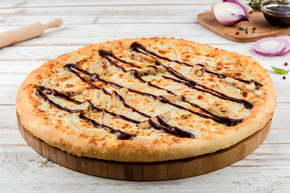 عجينة رقيقة ومقرمشة محشوة بصلصة البيتزا، وموزريلا، وصدور دجاج مشوية، وبصل، ومغطاة بمزيج الثوم، تُقدم مع صوص جانبي من اختيارك