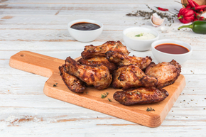 أجنحة دجاج بنكهة الباربكيو، تُقدم مع صوص الرانش