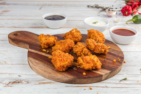 قطع صدور دجاج مقرمشة، مُغطى بصوص الداينمايت