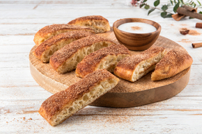 قطع من العجينة الأصلية المحمصة، تُقدم مع صوص المارينارا